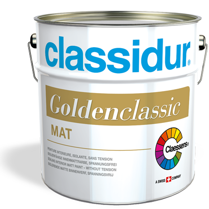 Classidur Golden Classic is een matte binnenmuur- en plafondverf op basis van aromaatvrije oplosmiddelen (isoparaffine), wit, spanningsvrij, met een hoog isolatievermogen en praktisch reukloos.